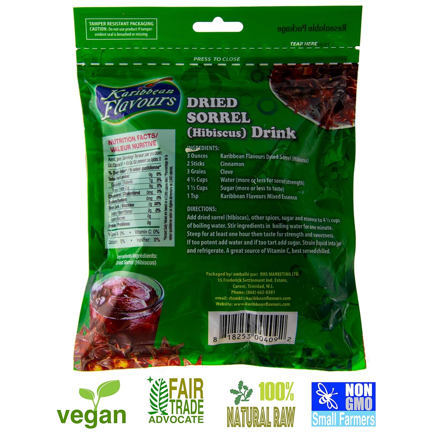 Sorrel Hibiscus Flowers (2 x 3Oz.) Herbal Tea Whole Petal 6 Oz - 100% Natural Dried Raw - Non GMO - Vegan - USFDA Inspected - Makes Refreshing Iced Tea Or Hot Tea