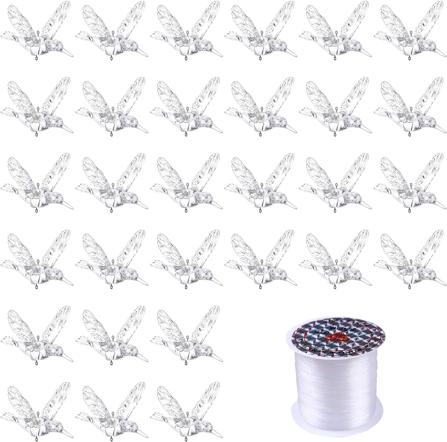 - The package includes 30 acrylic hanging diy flying birds and a roll of transparent thread that is 147.6 feet / 45 meters long. Each bird measures 3.94 inches / 10 centimeters in length and 3.35 inches / 8.5 centimeters in height.