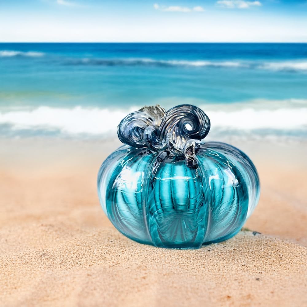Luke Adams Glass Handmade Glass Pumpkins Handmade Table Top Home Decor (Squat, Lagoon)