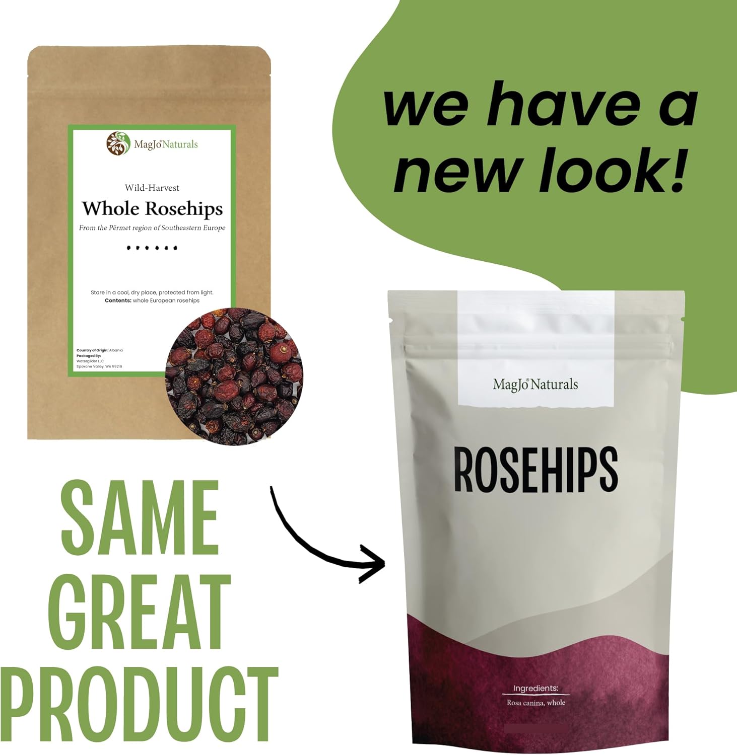 - WHOLE ROSEHIPS: 1 lb of Rosa canina packaged in a high quality resealable kraft bag