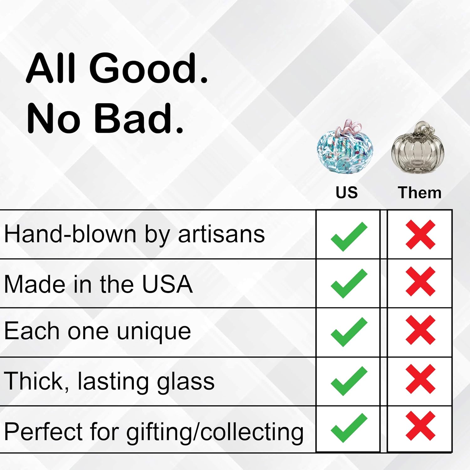 - Each glass pumpkin is carefully hand-crafted out of glass, making every piece unique in color and shape.