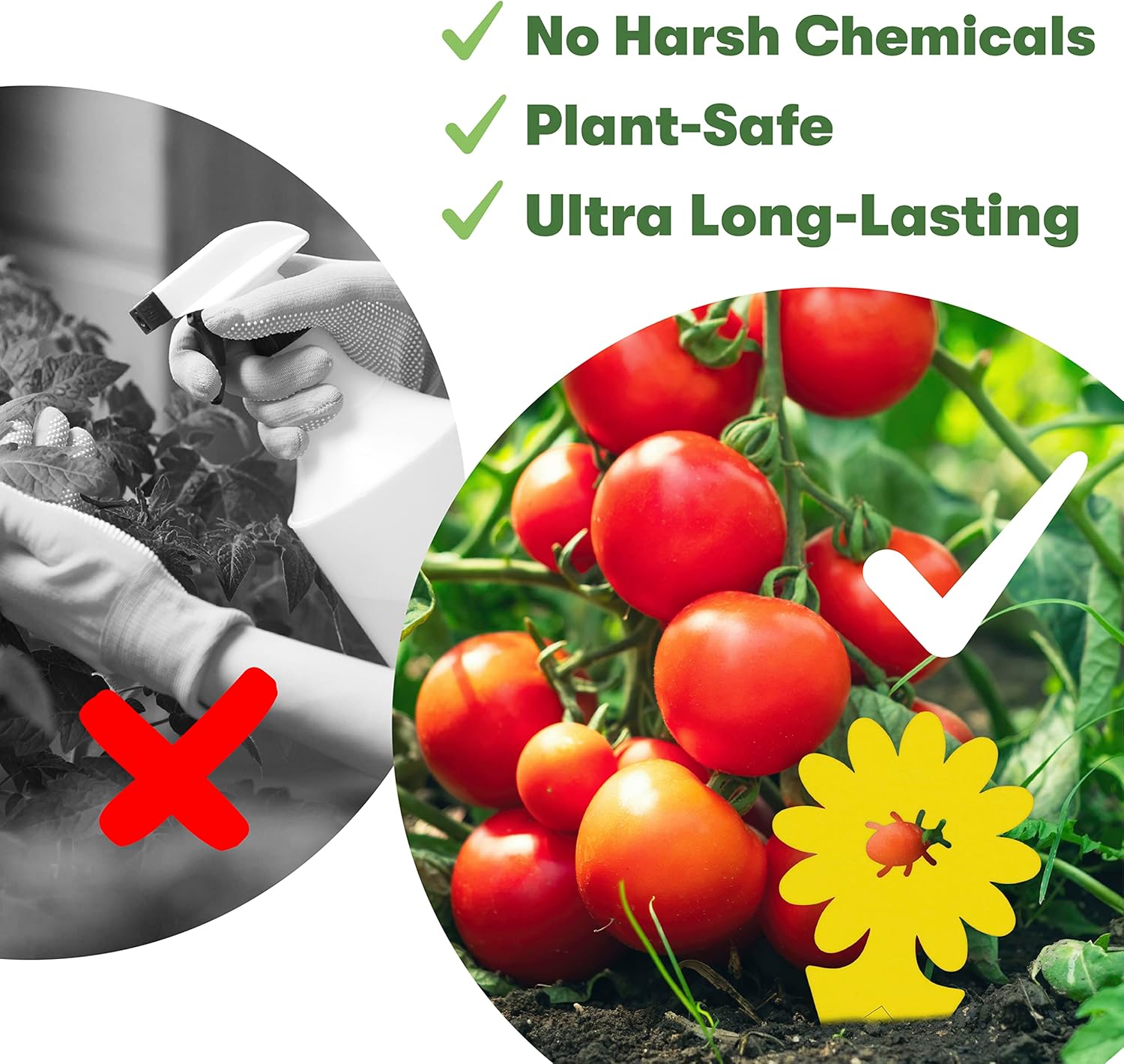 - Decorative Design: Made with a simple and discreet yellow floral design, Sticky Traps protect your plants in style. Simply pop the stake into the soil and enjoy the bright pop of color and effective bug protection.