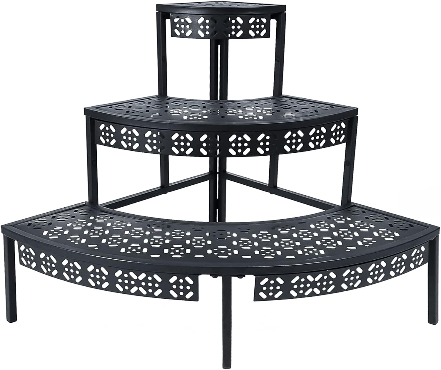 3 Tier Plant Stand Semi-Circular Flower Pot Organizer Rack Quarter Round Plant Display Holder Outdoor Storage Shelves Metal Corner Shelf Planter Shelving Ladder Plant Stand for Indoor Use(Black)