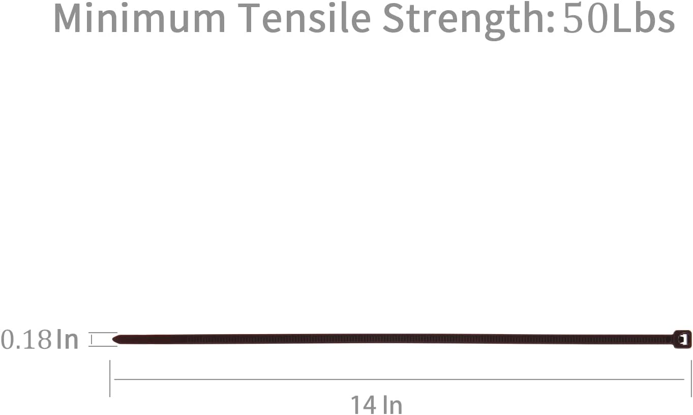 XINGO 100PCS Cable Zip Ties Heavy Duty, Premium Nylon Plastic Wire Ties with 50 Pounds Tensile Strength, Self-Locking Black Nylon Zip Ties for Indoor and Outdoor (14 inch, Brown)