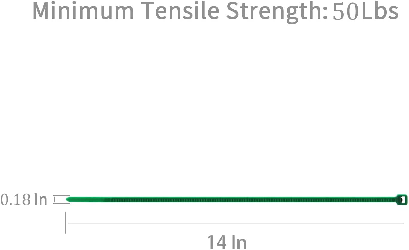 XINGO 100PCS Cable Zip Ties Heavy Duty, Premium Nylon Plastic Wire Ties with 50 Pounds Tensile Strength, Self-Locking Black Nylon Zip Ties for Indoor and Outdoor (14 inch, Green)