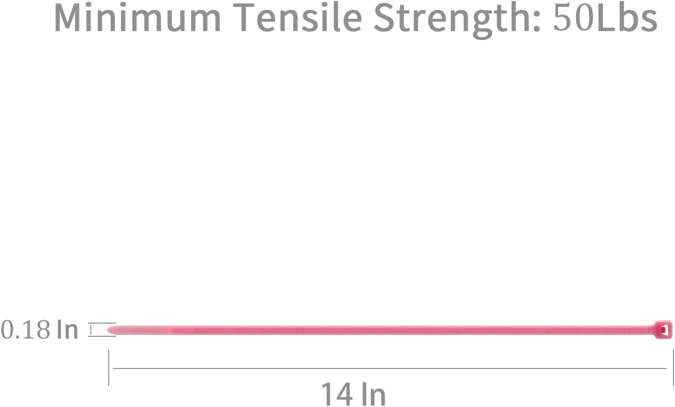 XINGO 100PCS Cable Zip Ties Heavy Duty, Premium Nylon Plastic Wire Ties with 50 Pounds Tensile Strength, Self-Locking Black Nylon Zip Ties for Indoor and Outdoor (14 inch, Pink)