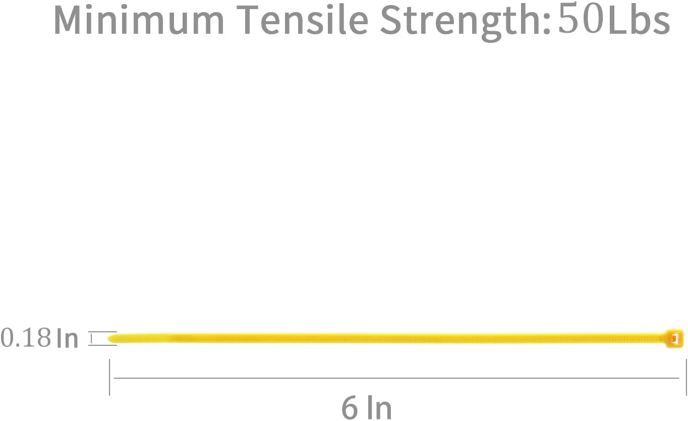 XINGO 100PCS Cable Zip Ties Heavy Duty, Premium Nylon Plastic Wire Ties with 50 Pounds Tensile Strength, Self-Locking Black Nylon Zip Ties for Indoor and Outdoor (6 inch, Yellow)