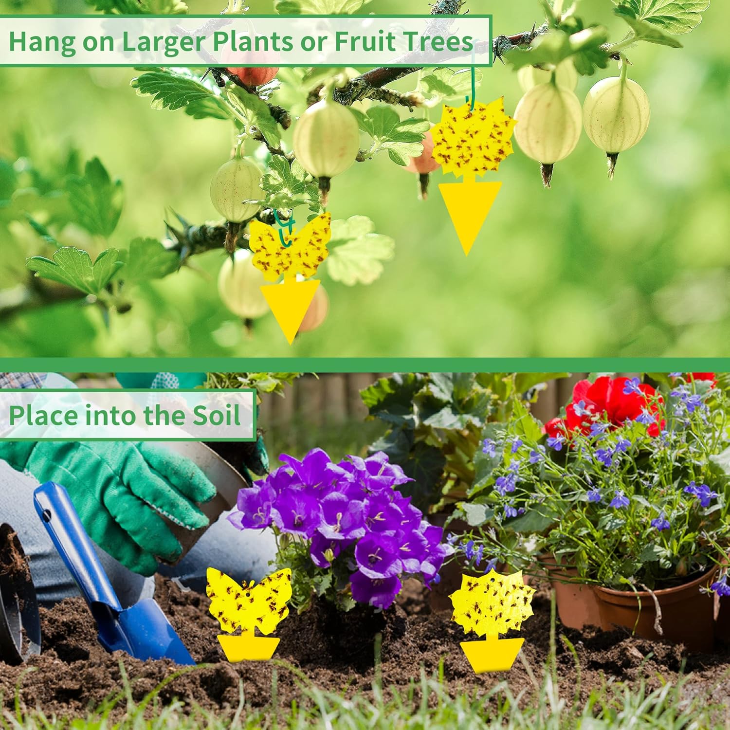 - 【Easy to Use with Twist Ties】Our fly traps are very easy to use: just place them directly into the soil, or attach the included twist ties and hang them from larger plants or fruit trees in your orchard. Keep your home and garden free of fruit flies and other flying insects such as whiteflies, aphids, gnats, fungus gnats, mosquitoes, thrips, leafminers, and olive tree flies.