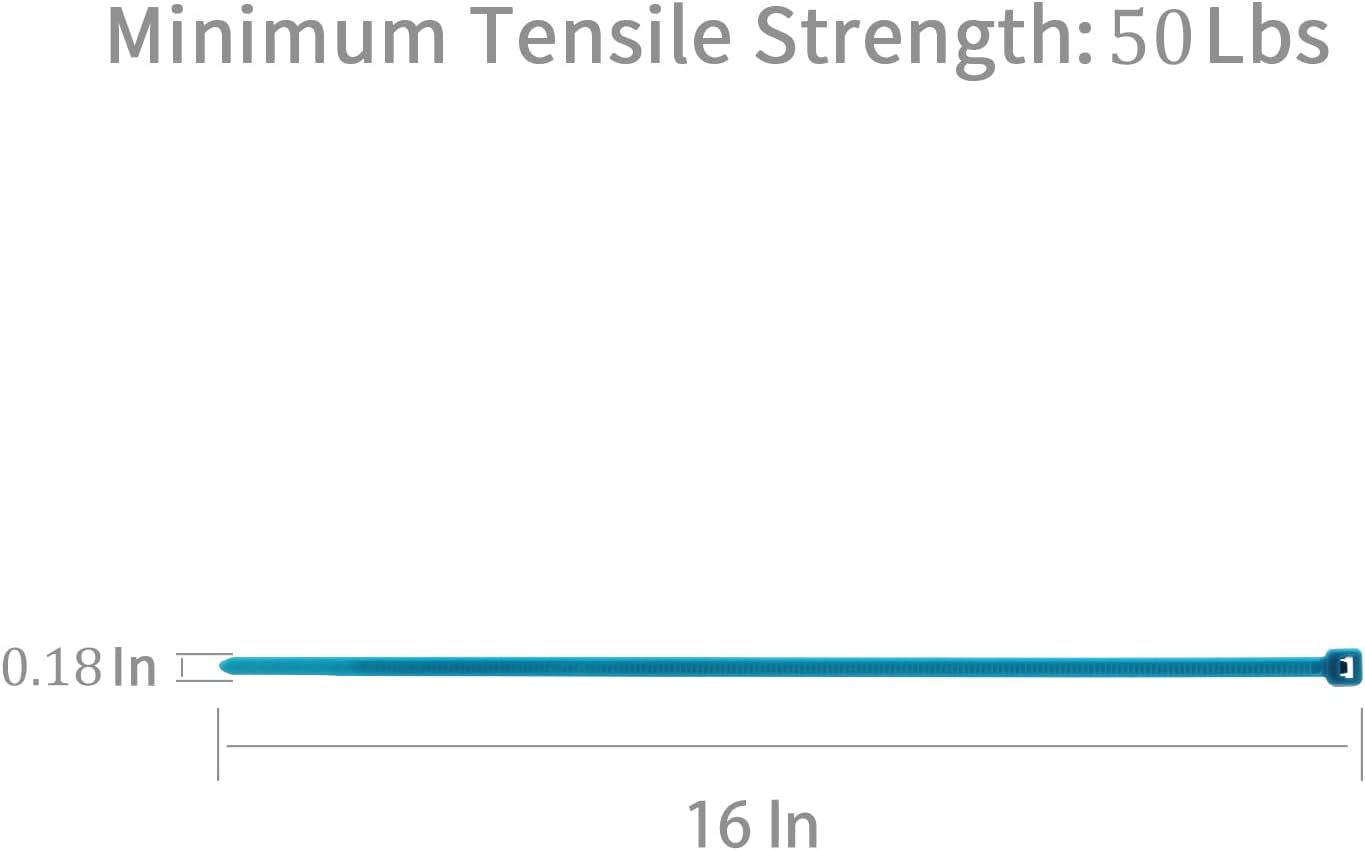 XINGO 100PCS Cable Zip Ties Heavy Duty, Premium Nylon Plastic Wire Ties with 50 Pounds Tensile Strength, Self-Locking Black Nylon Zip Ties for Indoor and Outdoor (16 inch, Blue)