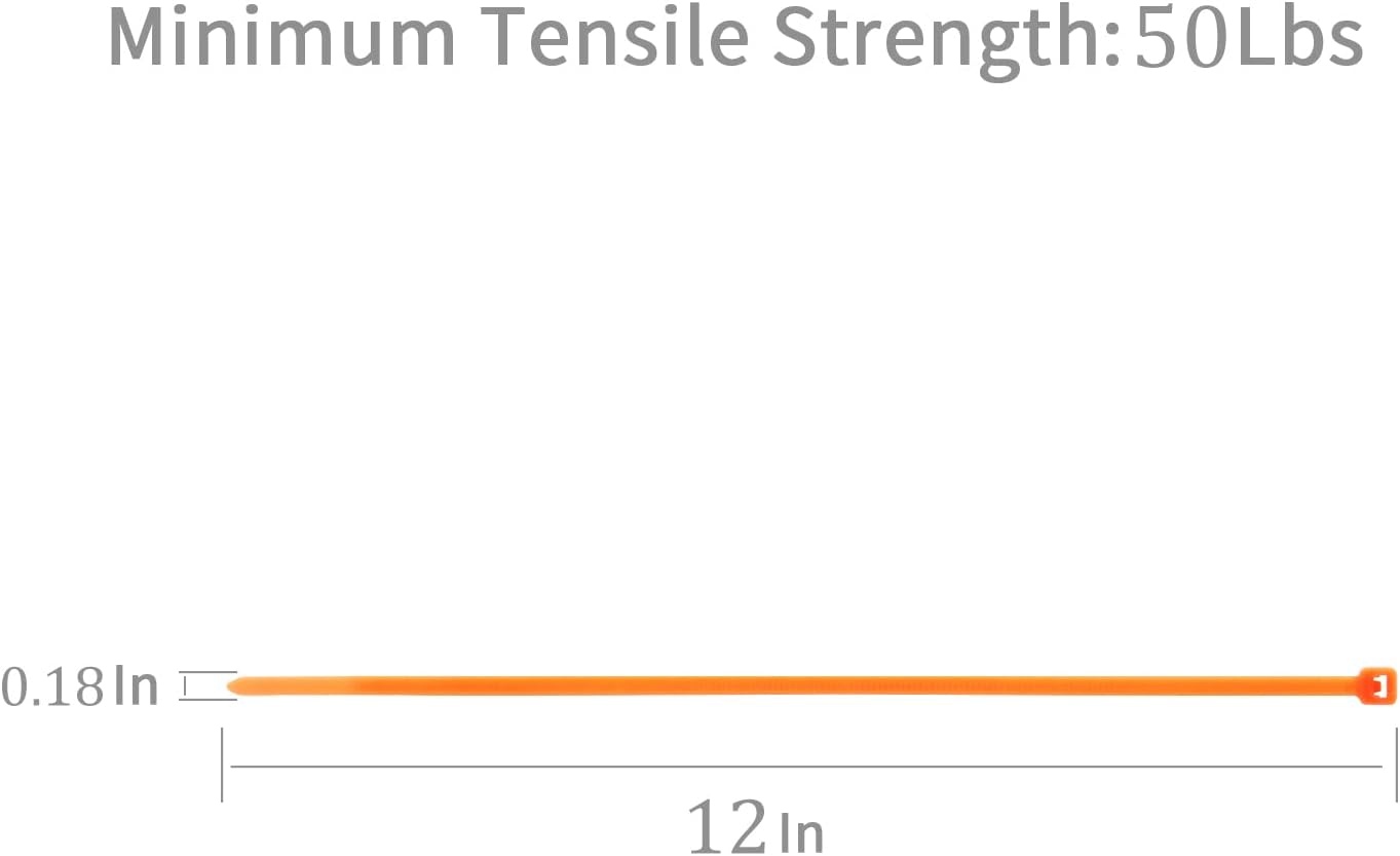 XINGO 1000 PCS Orange Zip Ties 12 Inch, 60 LBS Tensile Strength, Self-Locking Nylon Plastic Nylon PA66 Wire Ties for Indoor and Outdoor Use