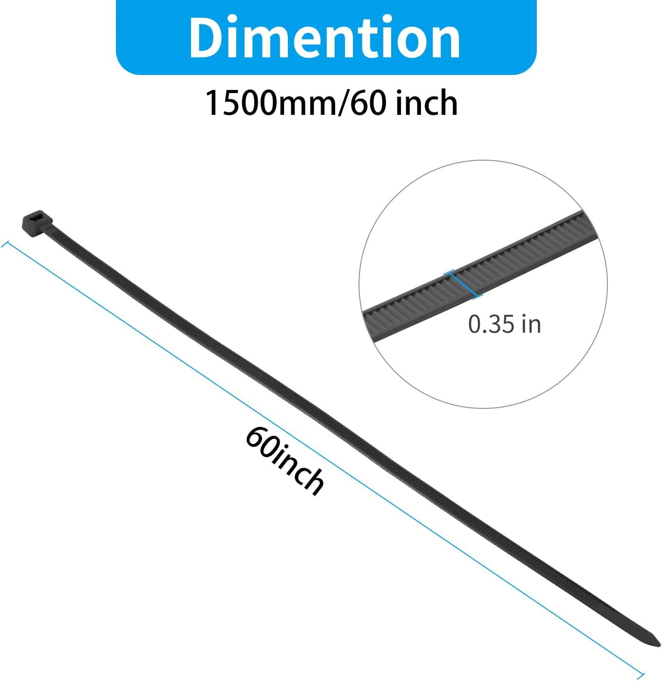 XINGO 60 inch Black Zip Ties Heavy Duty 20 PCS,200 LBS Ultra Strong Plastic Wire Ties, Large Cable Ties Extra Long Tie Wraps, Indoor and Outdoor UV Resistant