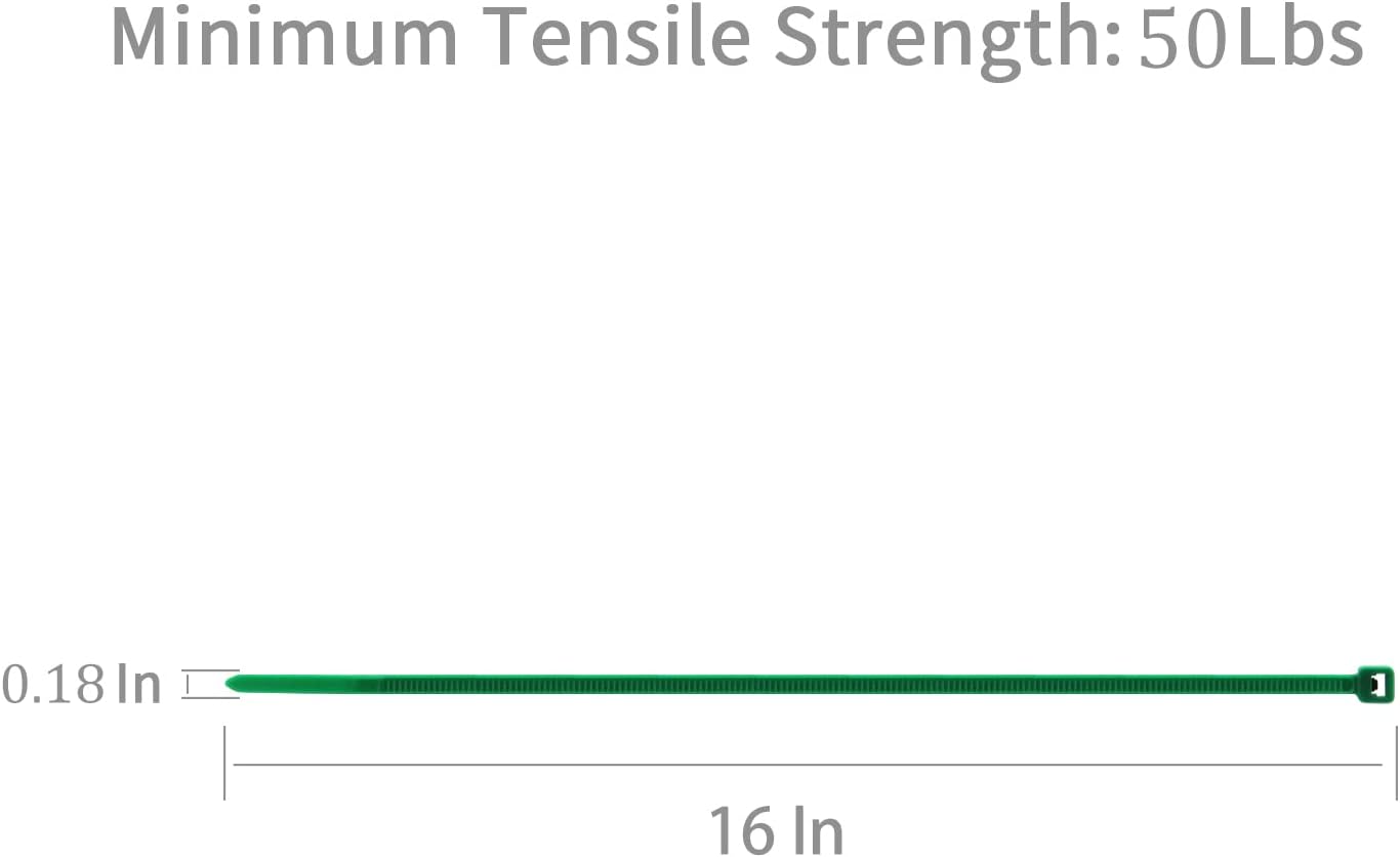 XINGO 100PCS Cable Zip Ties Heavy Duty, Premium Nylon Plastic Wire Ties with 50 Pounds Tensile Strength, Self-Locking Black Nylon Zip Ties for Indoor and Outdoor (16 inch, Dark Green)