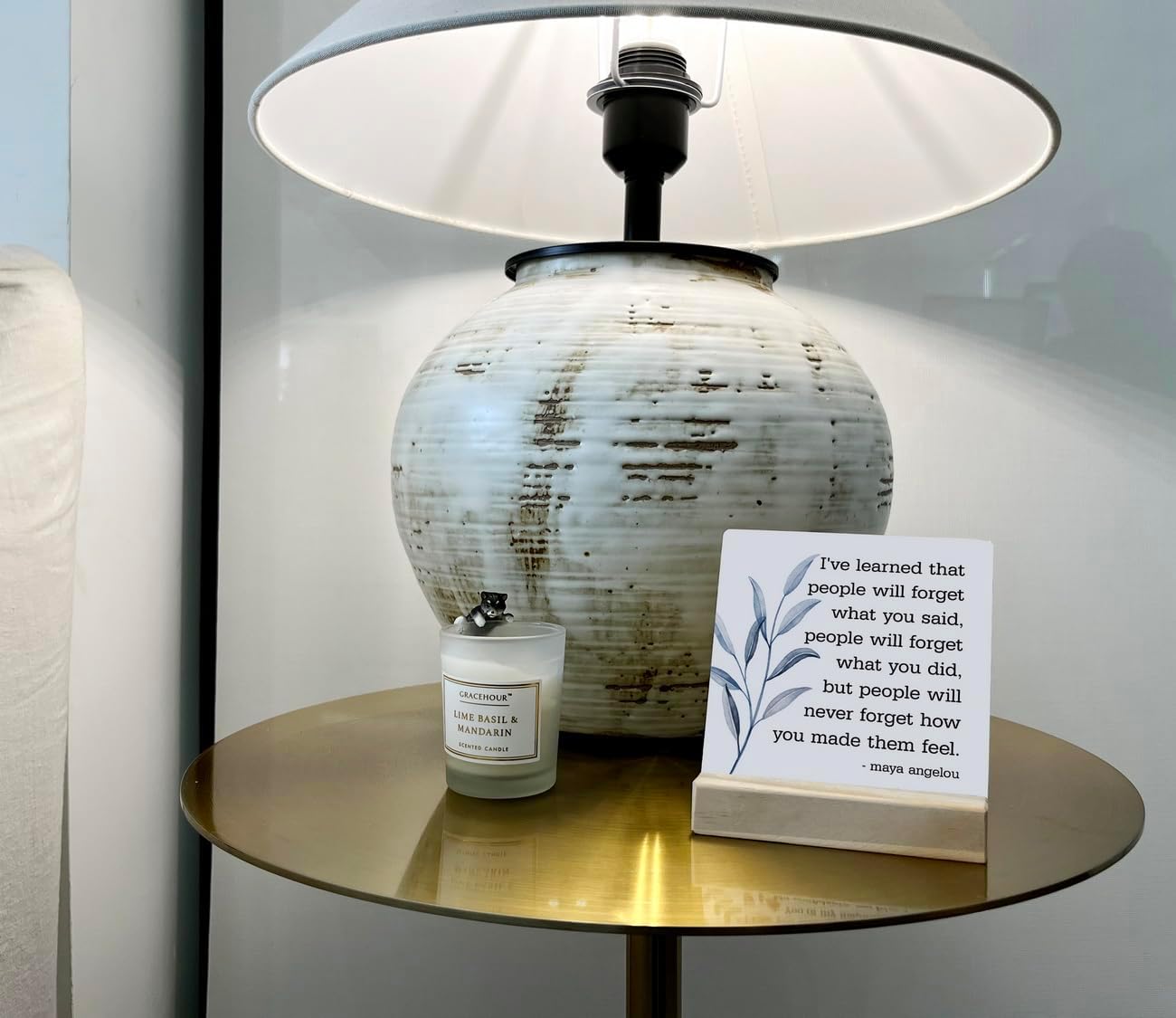 - Well-Made - Ready to use right out of the box, our plaque decorative signs are well-made, durable, safe to use, perfect for gifting and indoor use. elegant desk decorations for bedside tables, living room, bedroom, etc.