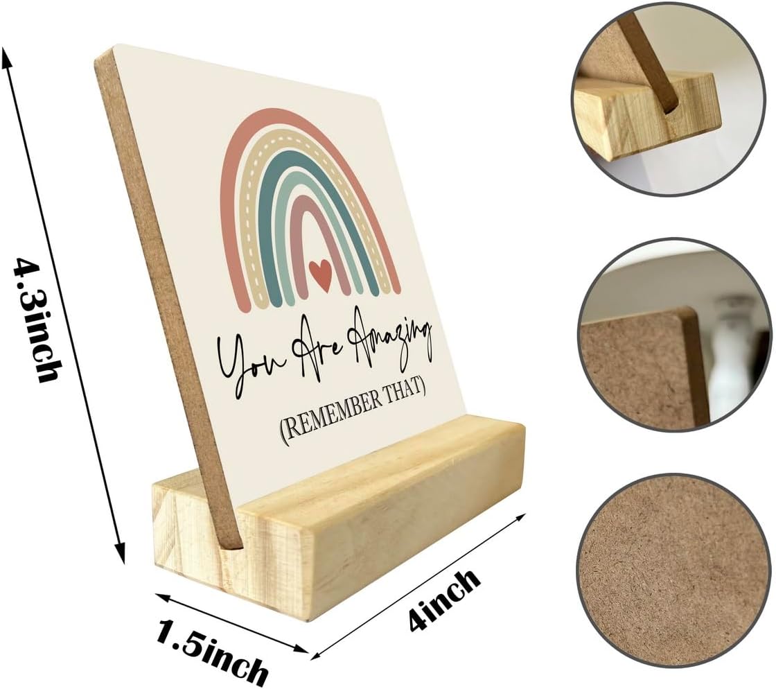 - Material and Dimension: The display board is made of sturdy MDF and comes with a wooden stand made of high quality pine wood; with emotional text and beautiful graphics, the plaque is tasteless, durable and long-lasting, not easy to fade and crack. Wooden sign 4 x 4.3 inches, the size is fit in your palm, easy to carry.