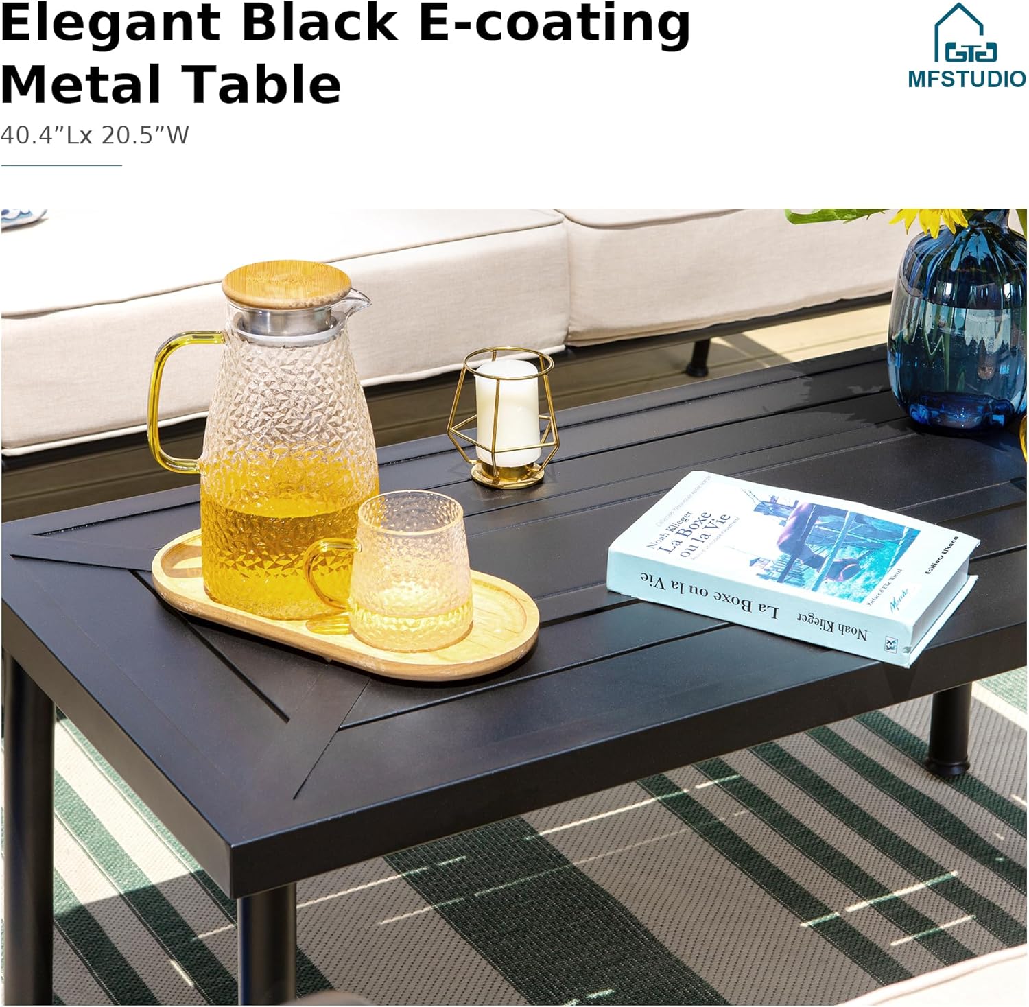 - Sturdy & Durable Material: This modern furniture set is made of heavy duty black metal frame that provides high load-bearing capacity(300 LBS). E-coating frame for rust and weather resistant. Easy to clean, no special care