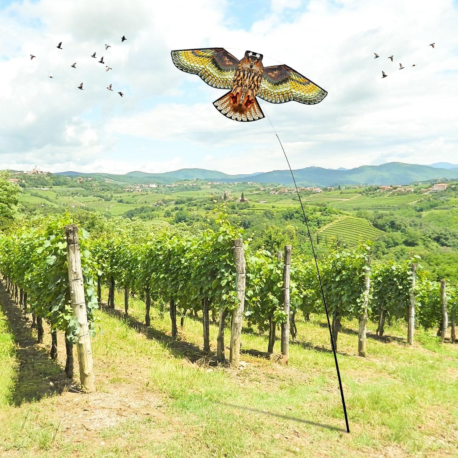 Bird Hawk Flying Kite with Pole Crop Protector Bird Scare Kites with 4m Pole - Owl Kite