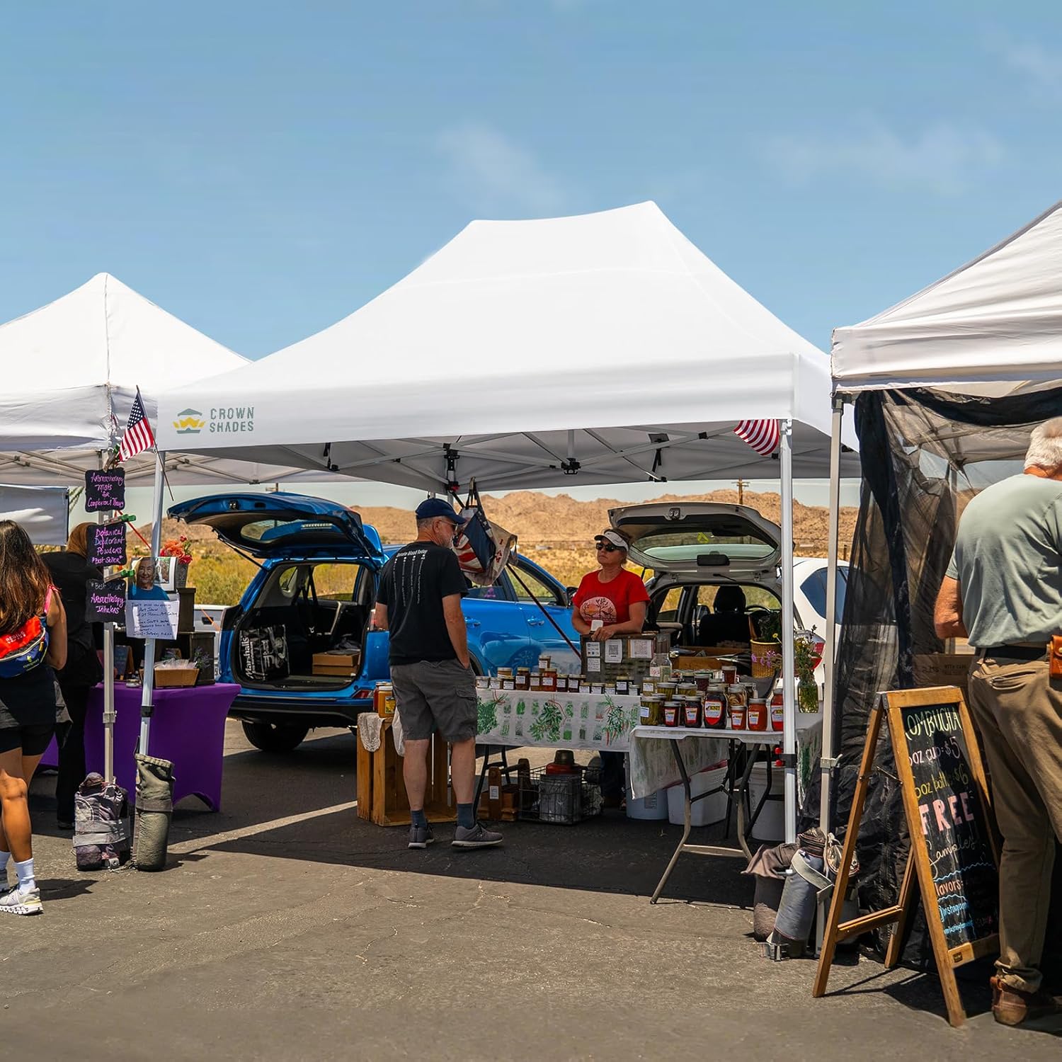 CROWN SHADES 10x15 Pop Up Canopy Tent, Thicken Frame Commercial Heavy Duty Tent, 4 Sidewalls 8 Stakes & 4 Sandbags & 4 Ropes, Outdoor Canopies for Events, Parties,White