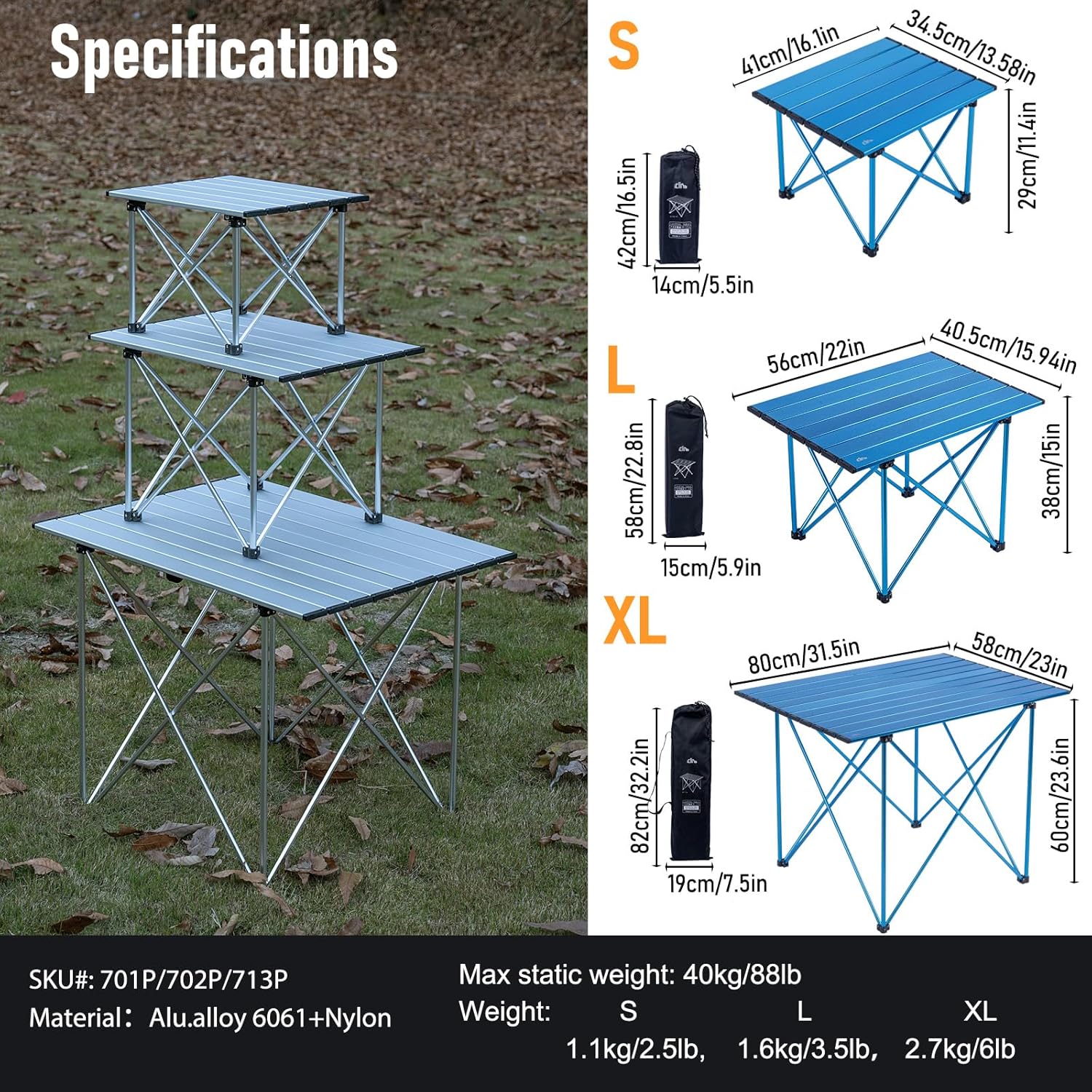 - Ultralight, made of aerospace-grade aluminum alloy, only 2.5 lbs; Max Load 88 lbs; Unlike wooden or nylon-top tables, this table is durable, waterproof, corrosion-resistant, easy to clean; Sturdy joints and anti-slip feet keep the table stable, with legs that wonβt fold, bend, or slip on any terrain; Very easy to set up, just open the base frame and attach the tabletop, enjoy your leisure time in seconds, video guide available on this page.