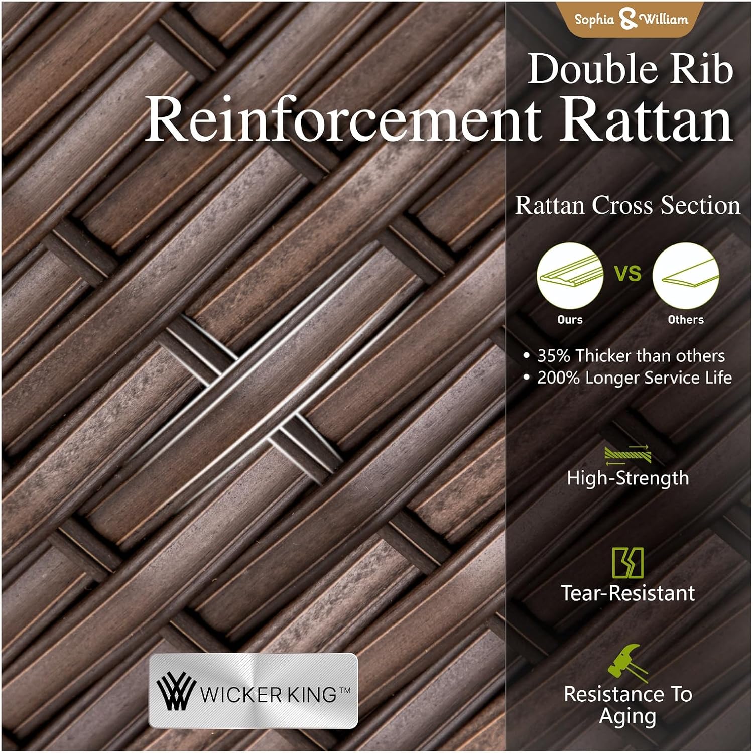 - LUXURIOUS COMFORT AND DURABILITY: This outdoor furniture set offers luxurious comfort and durability. Its 4-inch thick cushions and spacious seating area provide a perfect balance of softness and support, allowing you to relax for hours. Each seat can support up to 350lbs, ensuring both comfort and durability