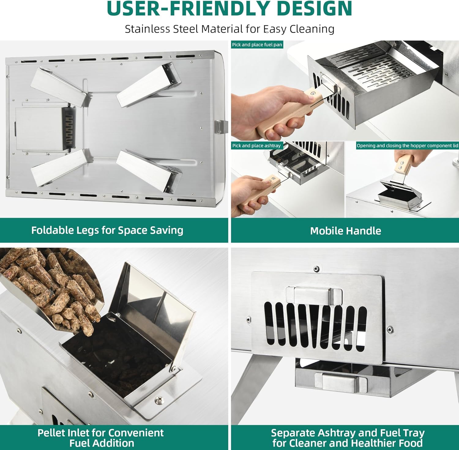 - User-Friendly Design: Designed with convenience in mind, the pellet pizza oven features a mobile handle for easy opening and closing of the pellet hopper, as well as effortless placement of the fuel tray and ash tray. The pellet hopper entrance allows for convenient addition of pellets, while the separate ash tray and fuel tray ensure cleaner and healthier cooking.