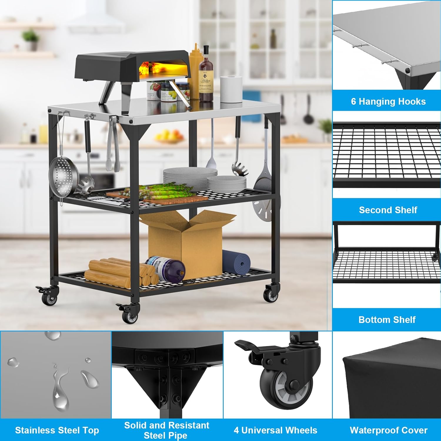 - 【Versatile Dining Table】This outdoor grill cart is a total game-changer for outdoor entertaining. Not only can you use it as a outdoor BBQ grill table, but it's also perfect for food prep, work, and even as a potting station or pizza oven stand. It's like having an extra table to help you throw the ultimate backyard bash
