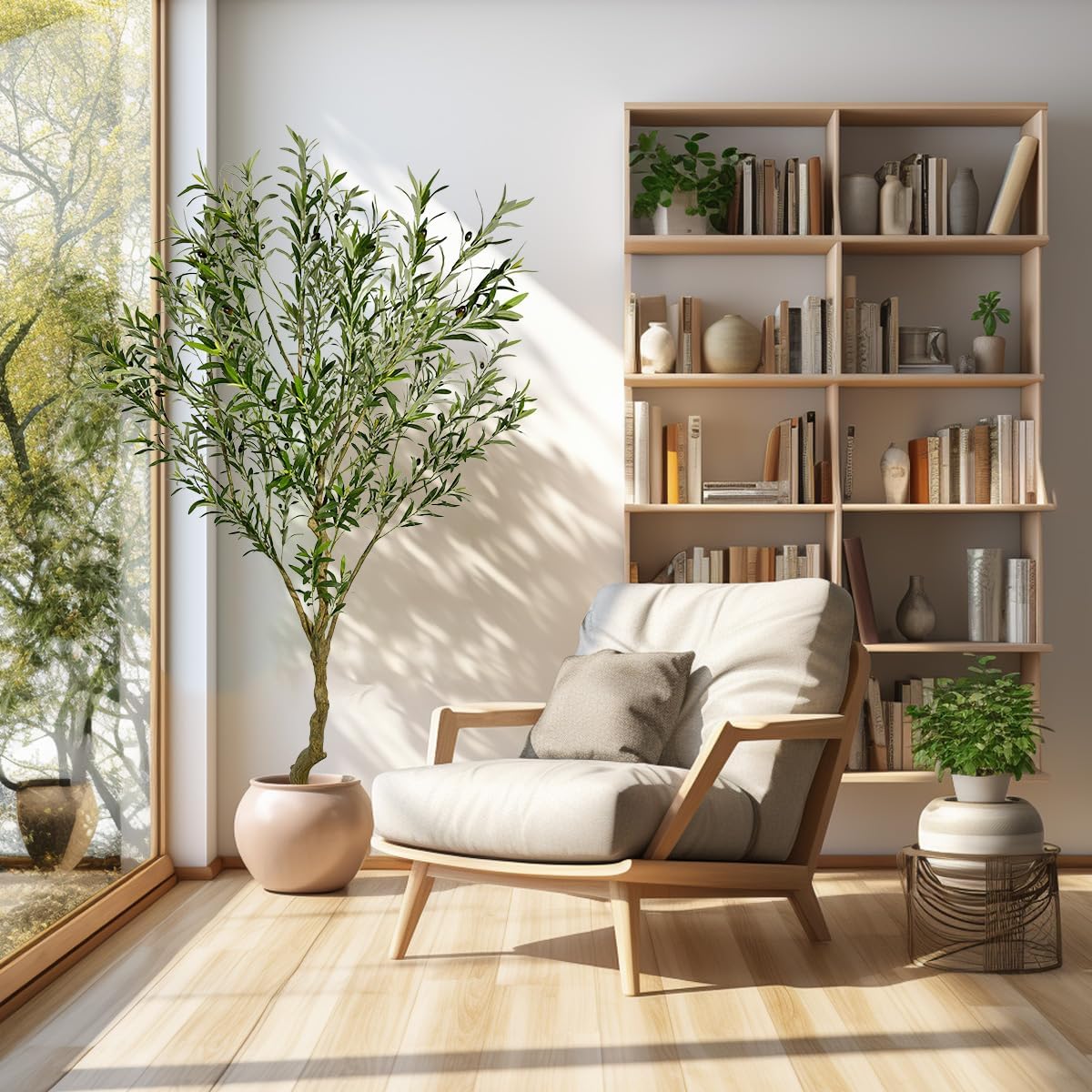 - 4. The olive tree is made of eco-friendly PE fabric and sturdy wire inside, no smell and no watering required. It will not fade when placed indoors and is baby and pet safe.