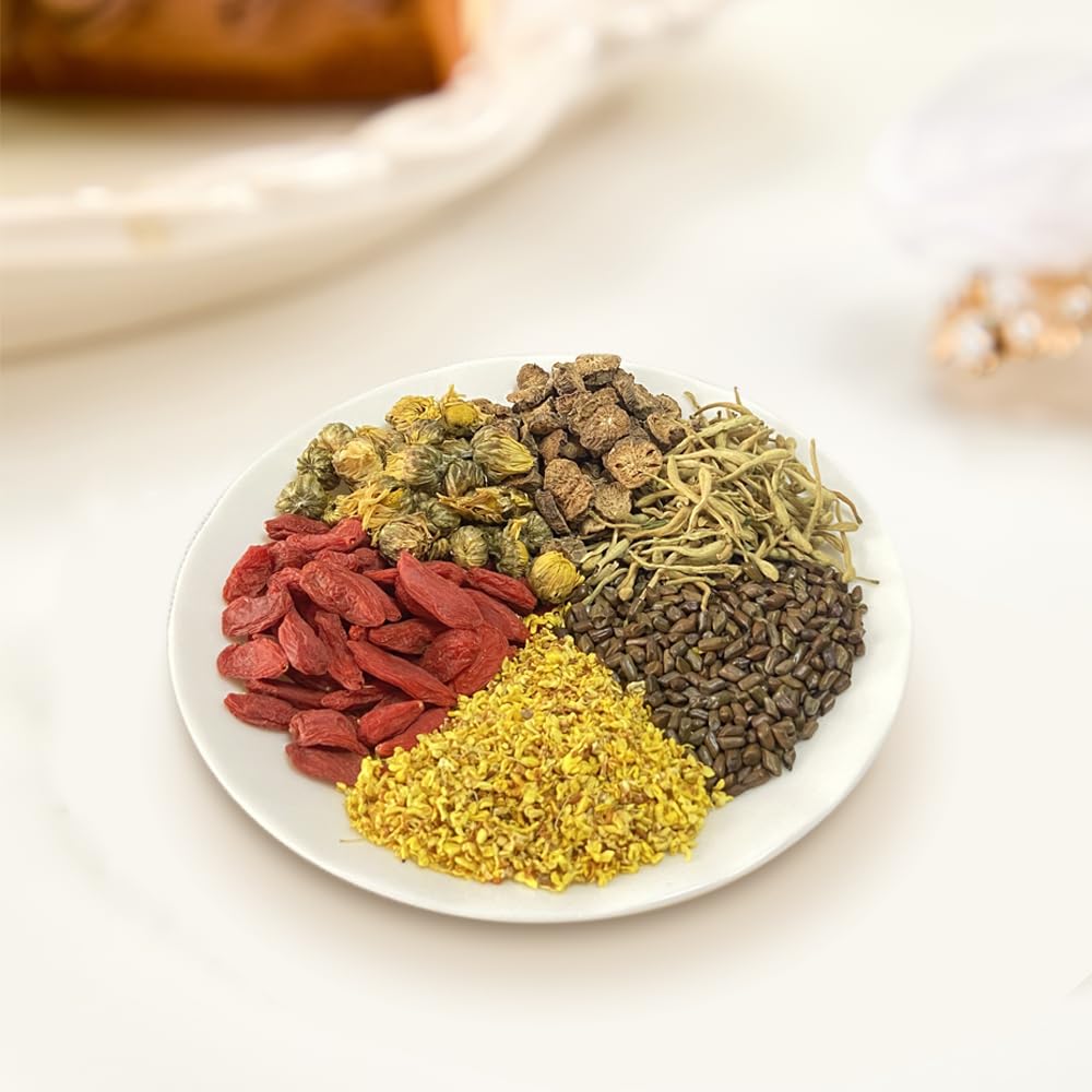 XIEJINJI Chrysanthemum Cassia Seed Tea Bags, 40 Count, Burdock Root, Goji Berry, Honeysuckle, Osmanthus Combination Herbal Tea, Eco-Conscious Packaging