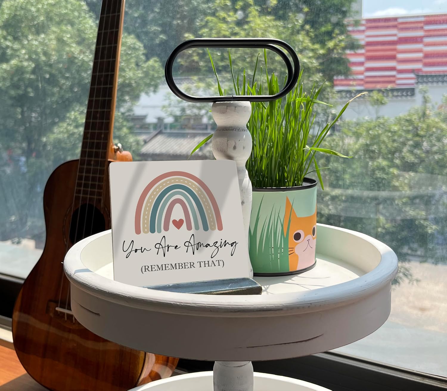 Primitive Wooden Sign, You are Amazing Remember That, Desk Plaque with Wooden Stand 4 x 4.3 inches, Rustic Home Decor, Farmhouse Sign, Inspirational Quotes Gifts for Friend Family, Cheer Up Gift A
