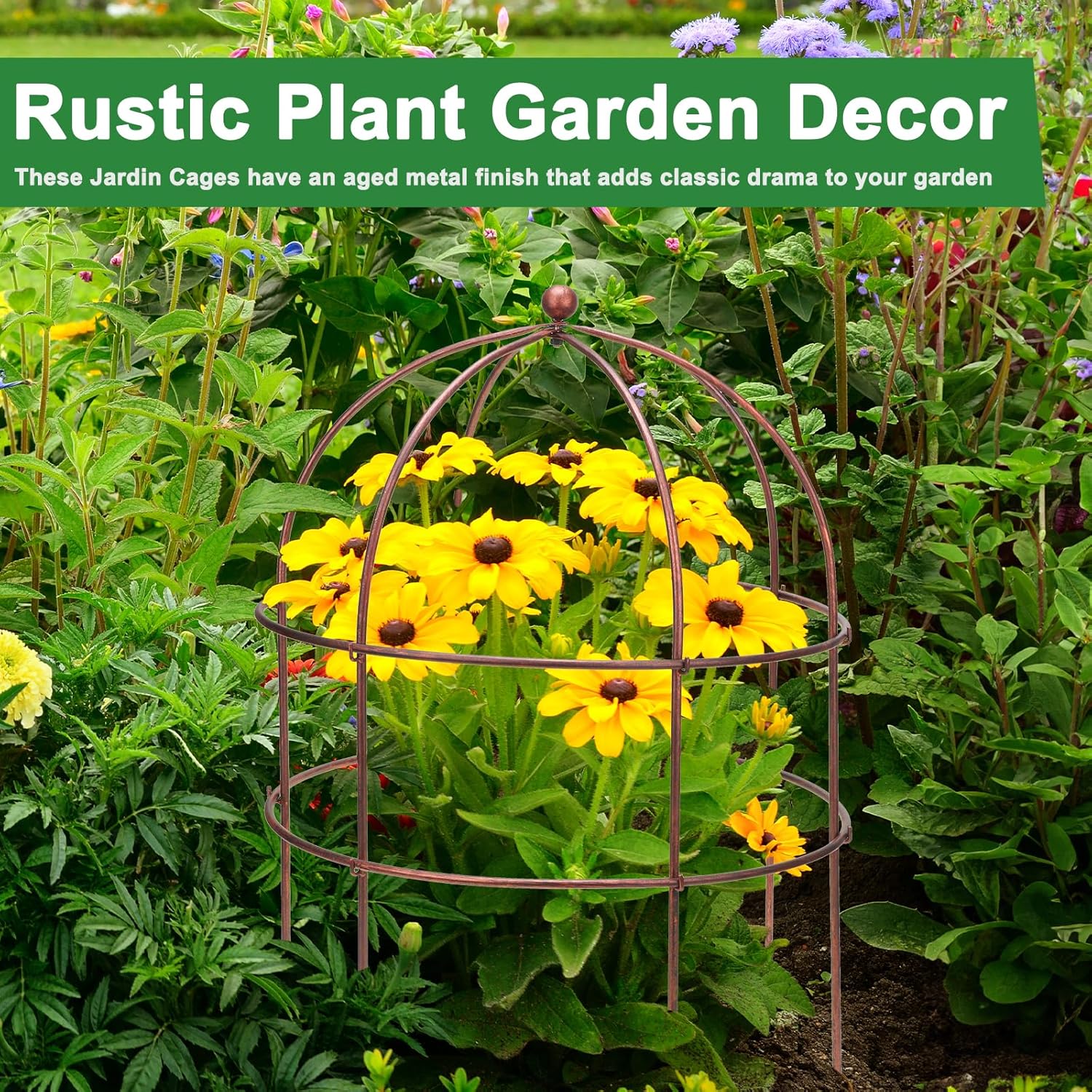 - Elegant Design: A beautiful birdcage design enhances your garden's aesthetic while functioning as a sturdy grow-through support that keeps plants contained and upright. This sculptural plant support maintains the shape of large perennials, complementing the elegance of your flower gardens