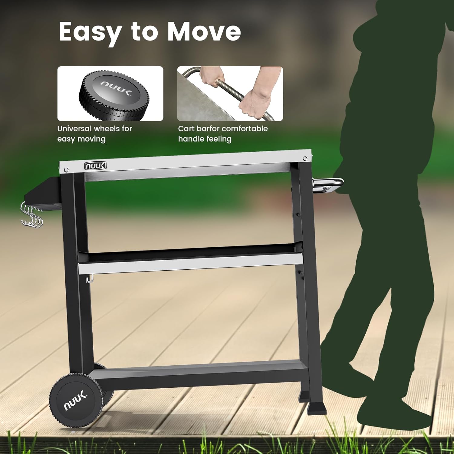 - NUUK GRILL CART - Featuring three layers outdoor cooking table offers secure storage for essentials like utensils, food, condiments, and tableware.Ideal for gatherings, barbecues, or leisure time in your backyard.