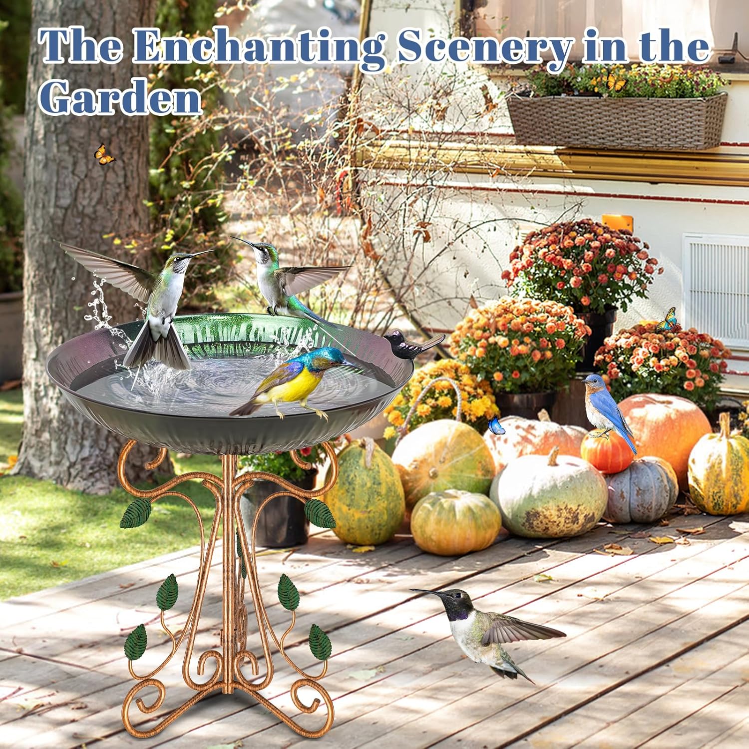 - 【Pedestal Metal Birdbath】 Made of high-quality metal with a rust-proof coating, this outdoor bird bath withstands rain, wind, and sun while remaining sturdy for long-term use.