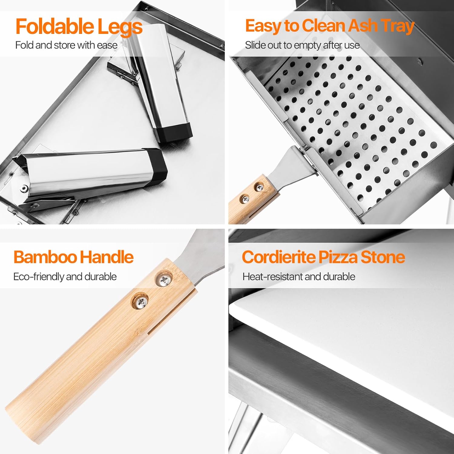 - Ultra-Portable & Ease of Assembly:The portable pizza oven is lightweight and durable with folding legs for simple assembly, no tools needed, quick disassembly and assembly for easy cleaning and storage, and weighs only 35 pounds, so you can have your own handmade, delicious pizzas anytime, anywhere, ideal for backyard or outdoor cooking events