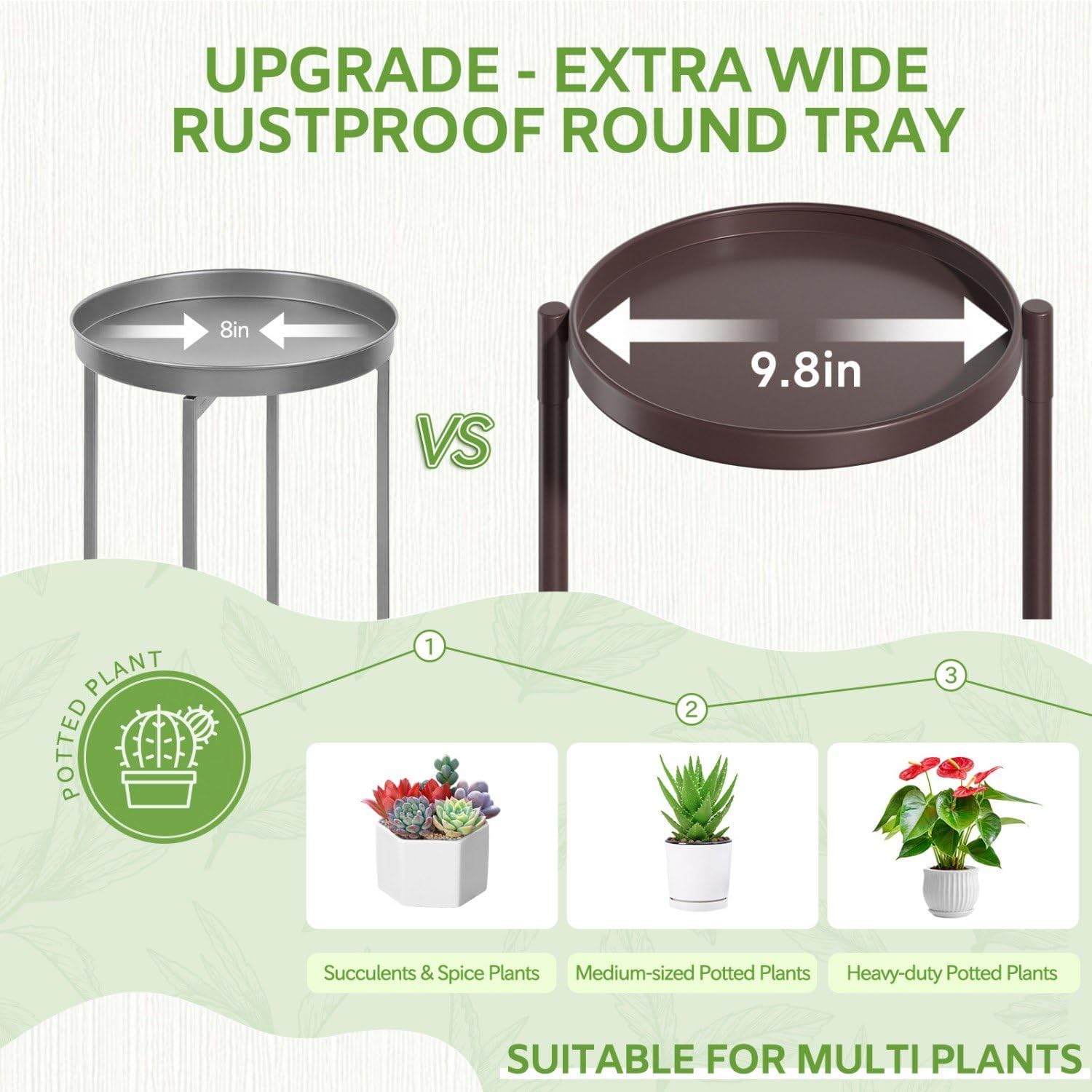 - 9.8 In Extra Wide Round Tray: This corner plant stands for indoor plants has been upgraded with an enlarged 9.8-inch diameter metal round tray with a total weight capacity of 156 lbs for large & heavy duty potted plants. The tiered plant stand is made of sturdy and durable iron with a waterproof and rustproof golden lacquer finish, making it suitable for indoor and outdoor use
