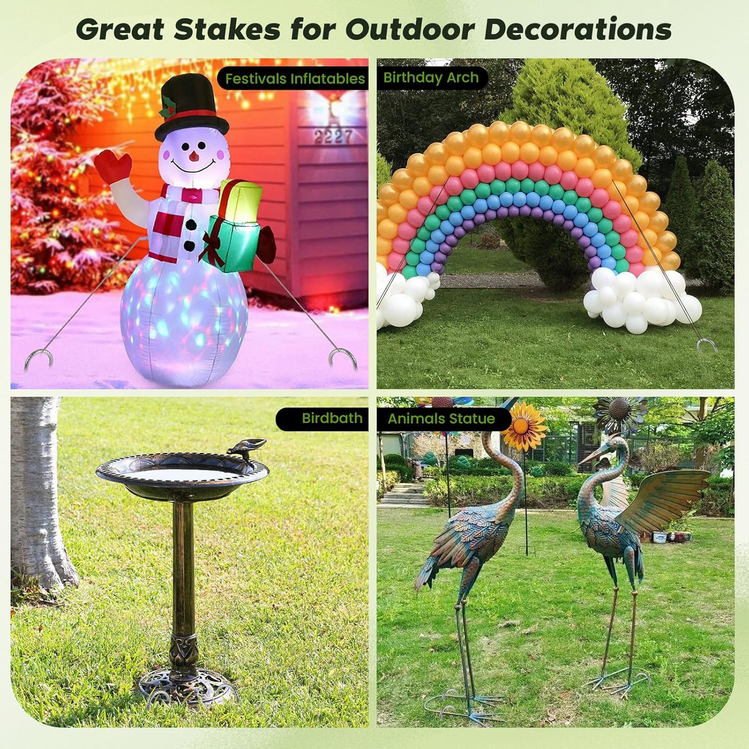 - 【12 inches Stakes Heavy Duty】Sold in bundles of 34 pieces, 12 inches length from tip to hook, 5/16"(8mm) diameter fence stakes. The hook is 2", pefect for holding down inflatables, stake down a tarp, lawn decor, chain link fence etc.