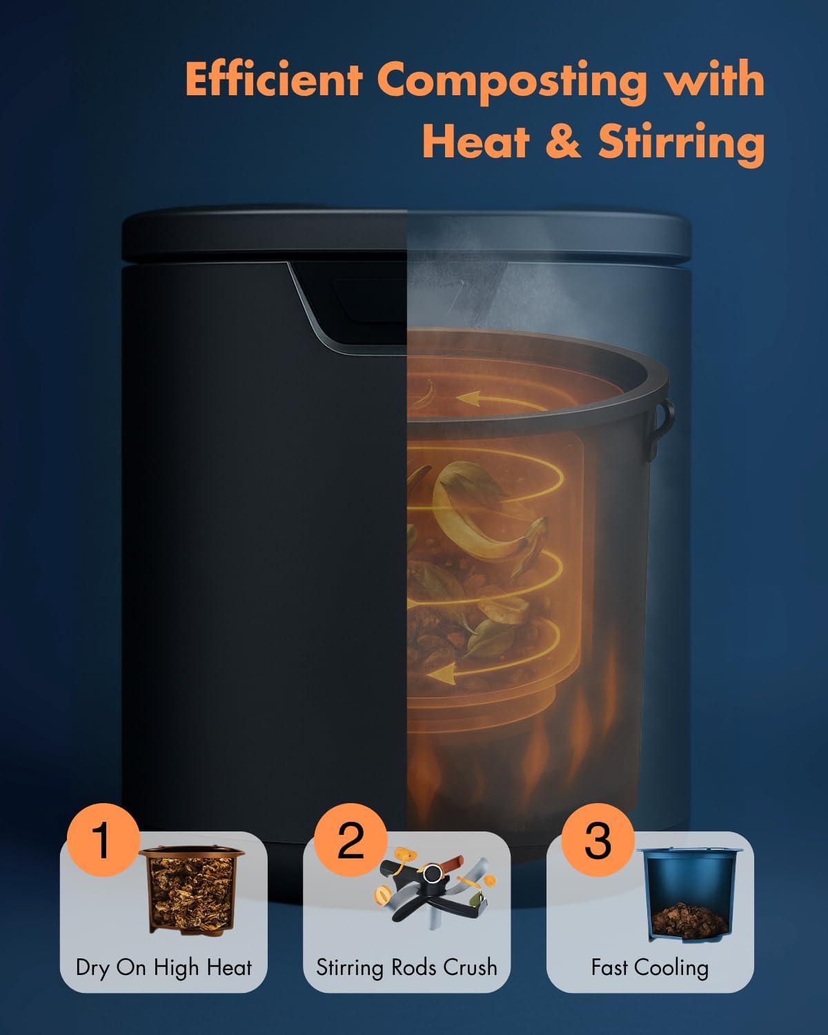 - Efficient & Fast Waste Reduction: The aGratHav smart electric composter reduces up to 90% of food waste in just 3.5 hours. High-temperature drying, grinding, and cooling methods make composting quick and effective—perfect for busy kitchens!