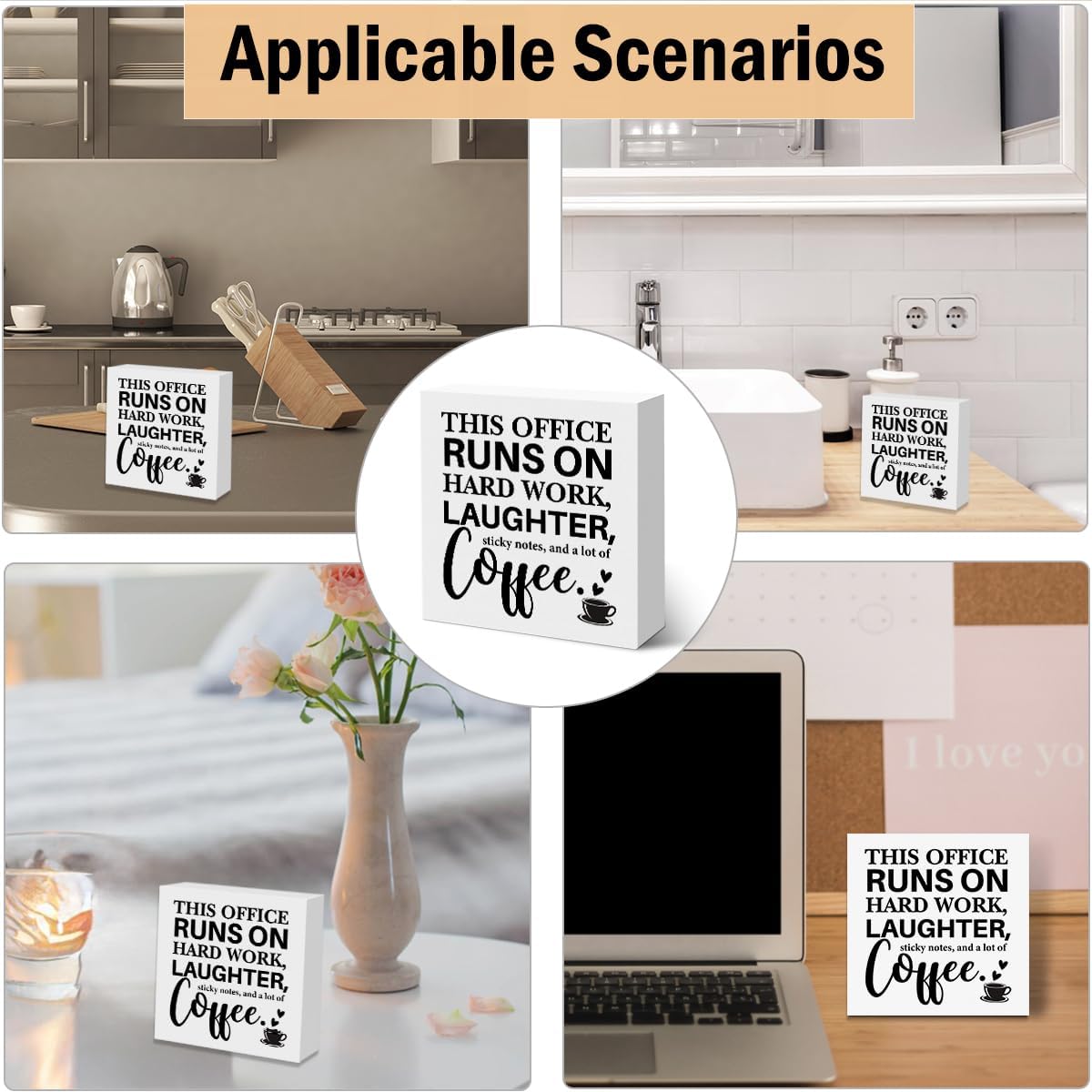 Farmhouse Office Desk Accessories Wooden Box Sign, Positive, This Office Runs on Hard Work Wooden Sign Decorations for Table Shelf, Tabletop Coffee Decor