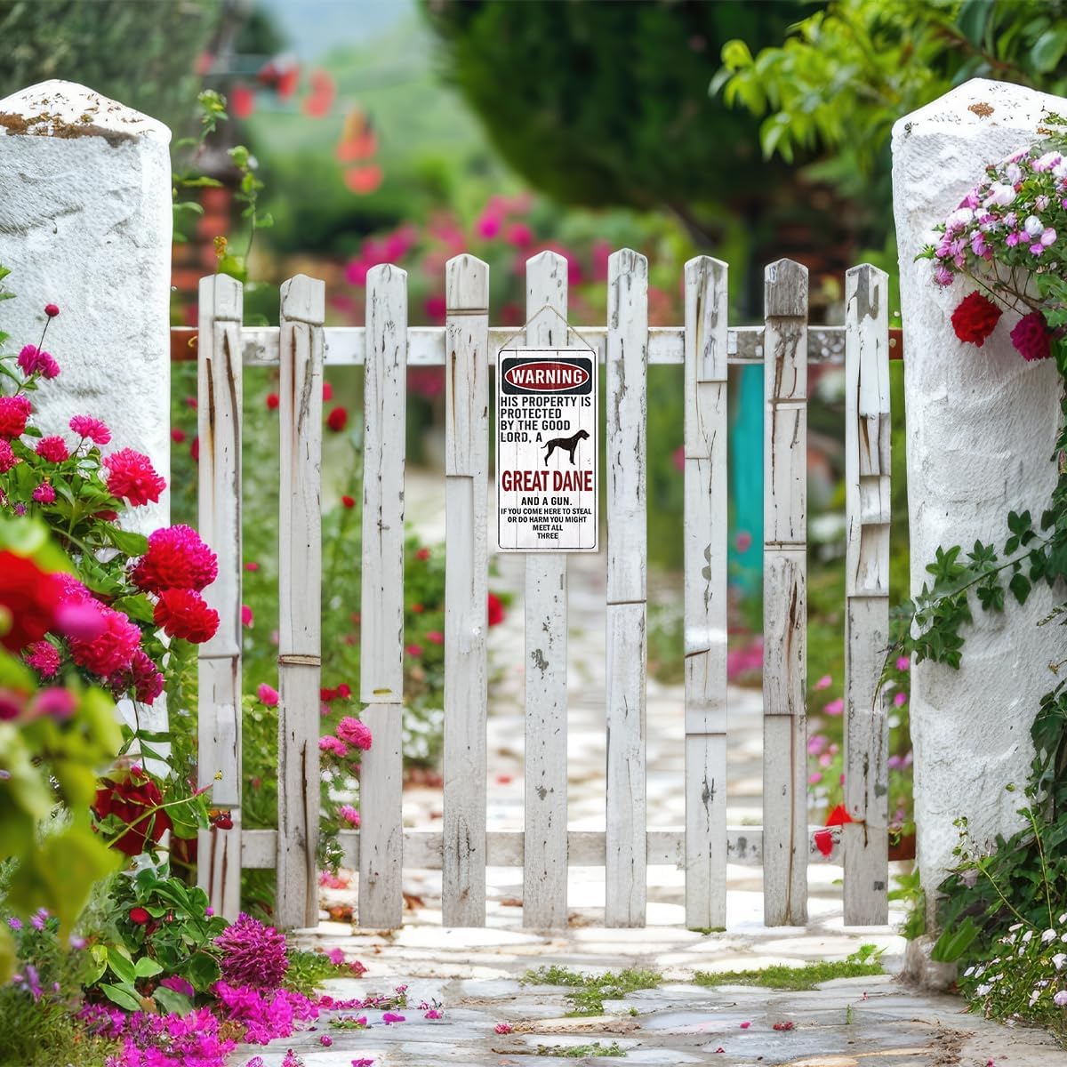 Warning Sign, This Property Is Protected By The Goodlord, A Great Dane And A Gun Warning Wood Plaque Sign, Funny Door Signs, Decorative Wood Hanging Suspension Plaque, Farmhouse Wooden Wall Decor