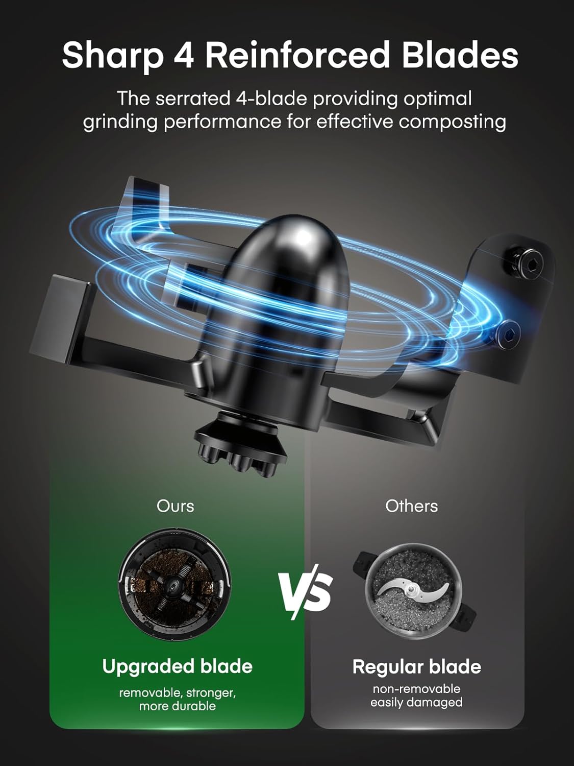- 【Whisper-Quiet & Energy-Saving】Equipped with low-speed, high-torque blades, this compost machine effortlessly processes food materials like chicken bones, while generating little to no noise, allowing you to run cycles at night. Whether you want to reduce your carbon footprint or are looking for sustainable gifts for family and friends, FOHERE's electric compost bin is an ideal choice!
