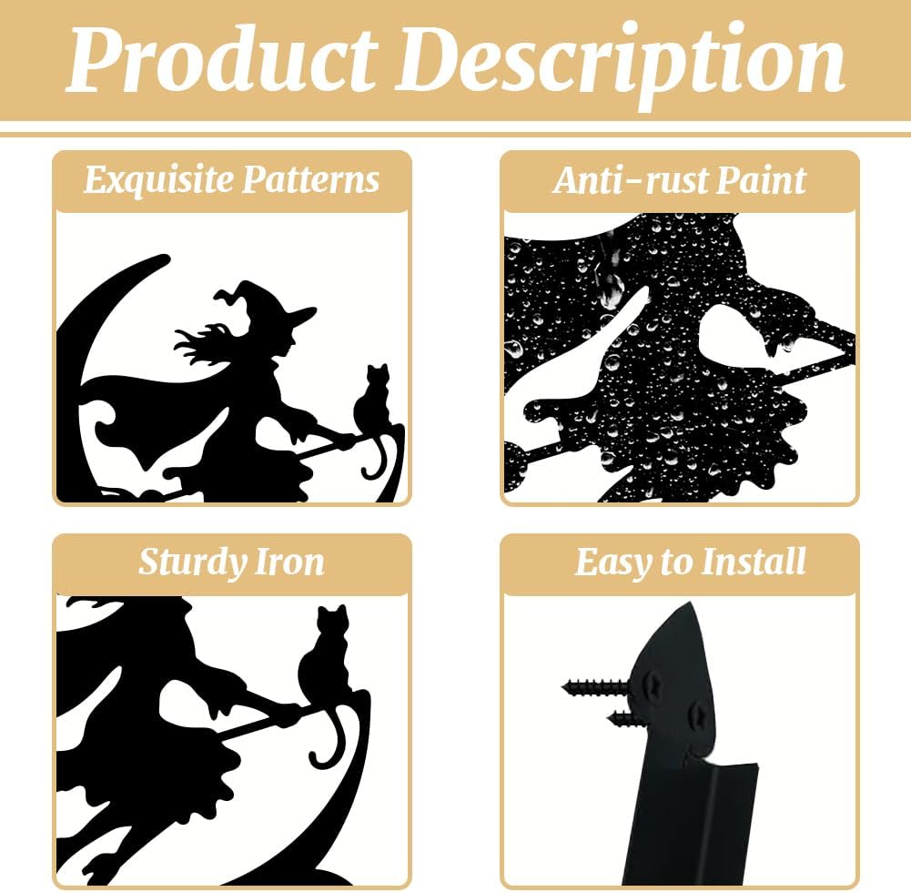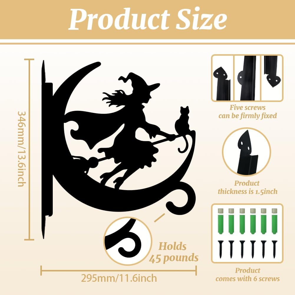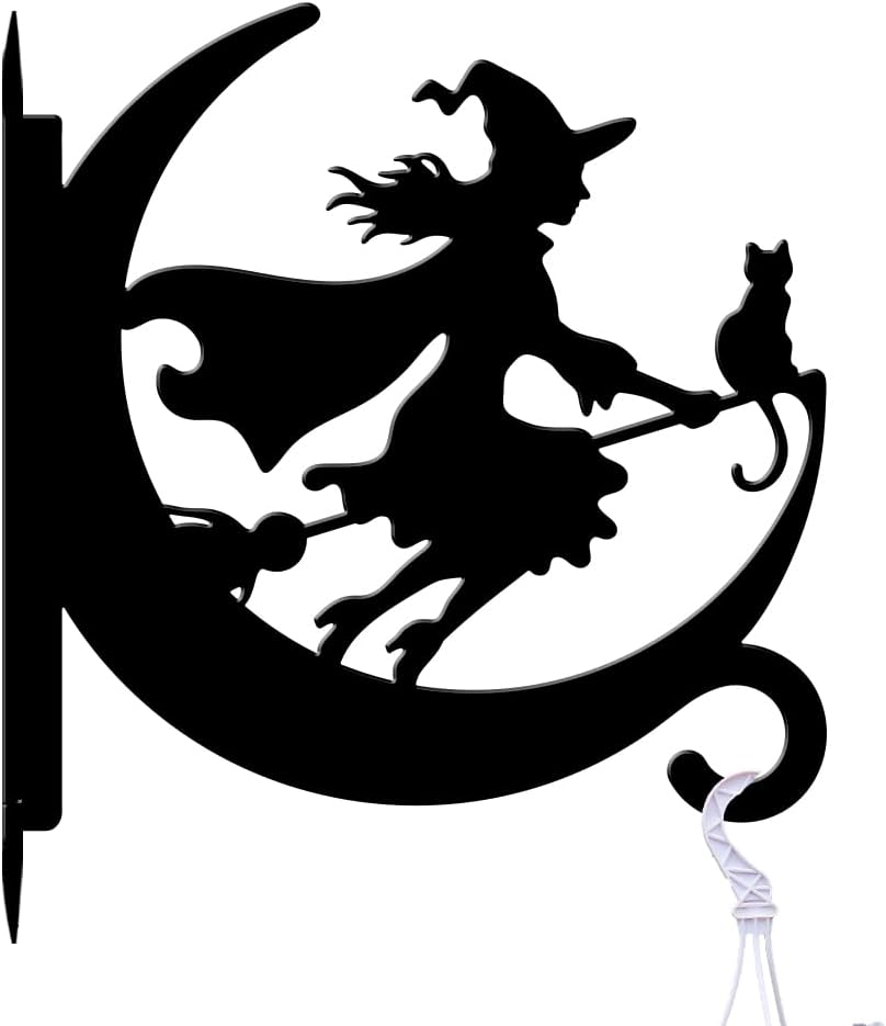peacoblue Iron Plant Hangers Hooks for Outdoor Indoor Hanging Plants Flower Fern Pots Lantern Bird Feeder,11.6"x13.6" Weather Resistant Metal Wall Holder for Porch Garden Farmhouse(Witch and Cat)