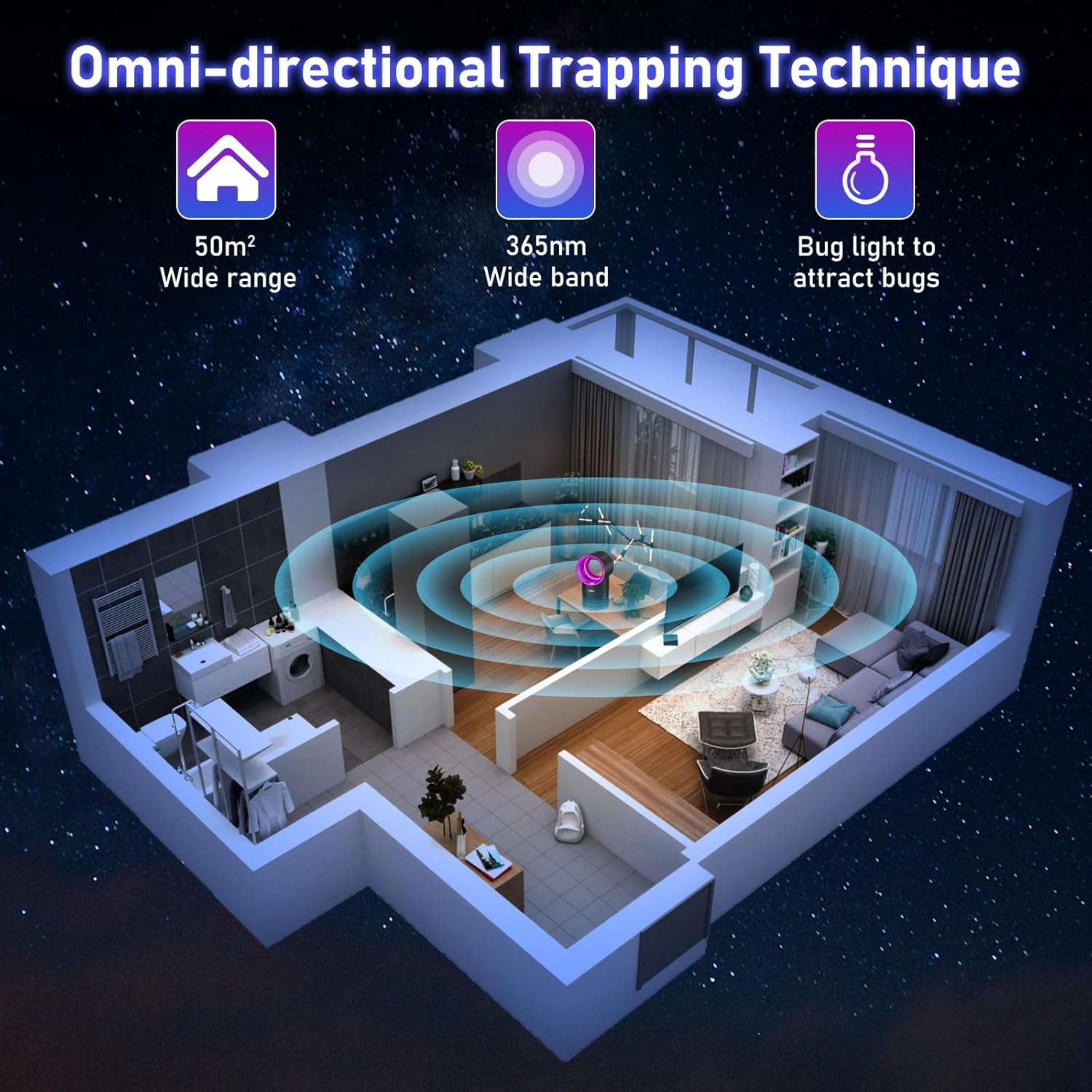 - Strong Suction: Fly traps indoor for home is equipped with bug lights that emit 365-395NM wavelength light, which is strongly attractive to insects with powerful suction. The light of the gnat trap is used to attract the flying insects, with the sticky glue board, so that they cannot escape.