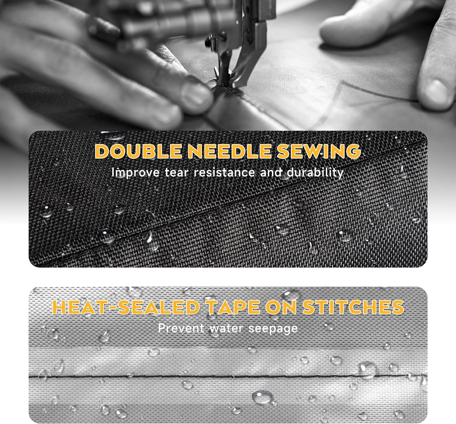 - ANTI-TEAR MATERIAL β Designed to be long lasting, this grill cover is made of high-density 600D oxford fabric with reinforced stitching, which is heavy duty and durable materials that can withstand harsh weather conditions and resist tearing, fading, and other types of damage