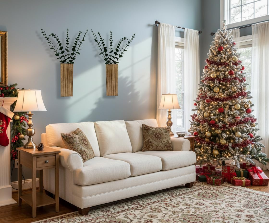 - Diverse decoration options: The flower pots can be matched with various artificial plants, such as the eucalyptus leaves in the picture, to present a fresh and natural effect; you can also put in dried flowers to create a different romantic atmosphere. You can also change different types of plant decorations according to different seasons and festivals to keep your home fresh at all times.